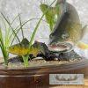 For sale, we have a superior Walleye fish taxidermy mount. This walleye measures 30″ long, has a girth of 18″, and has an estimated live weight of 7 lbs. It is posed chasing after a small perch and is mounted to a custom faux habitat base. The fins are in outstanding condition, the painting is top-notch, and the taxidermy work is masterful. All of this combined makes this the perfect mount for any angler. All applicable dimensions are included to help ensure this item will fit within your intended display space.