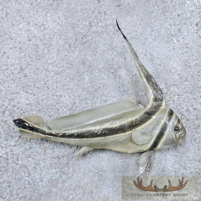 This is a really cool Jack Knifefish saltwater fish mount, measuring 7” long, with a girth of 4” and an estimated live weight of just over 1 lbs. It is posed facing the viewer’s right side in a swimming motion. The fins, painting and taxidermy work are all in outstanding shape, earning our Excellent™ overall quality rating. All applicable dimensions are included to help ensure this item will fit within your intended display space.