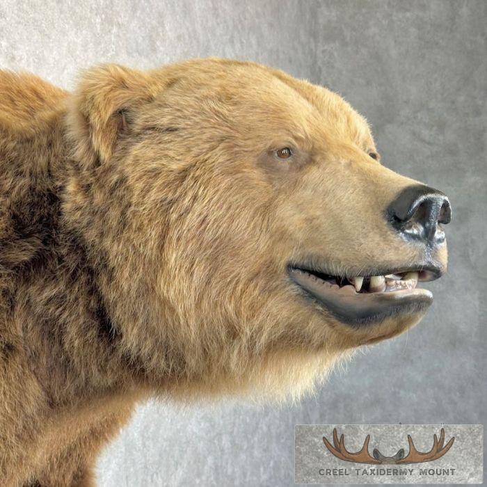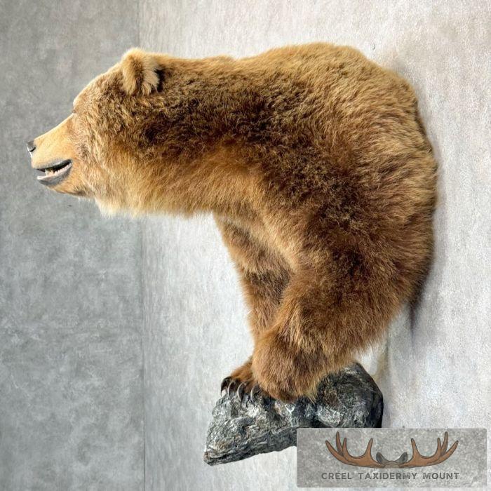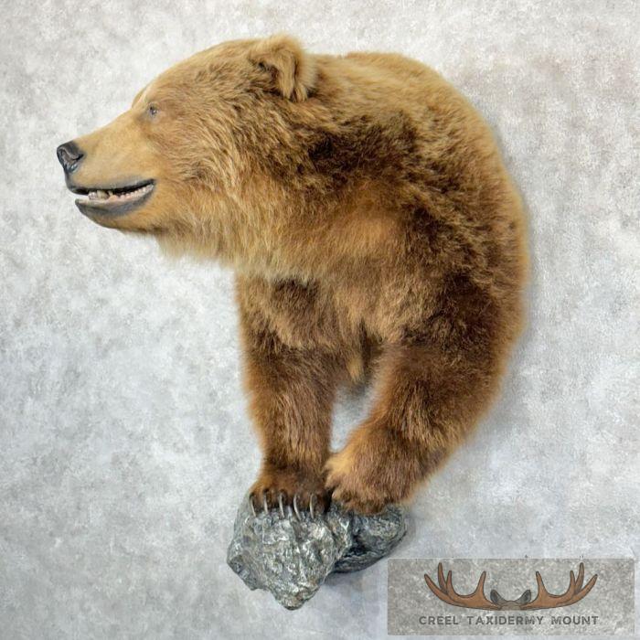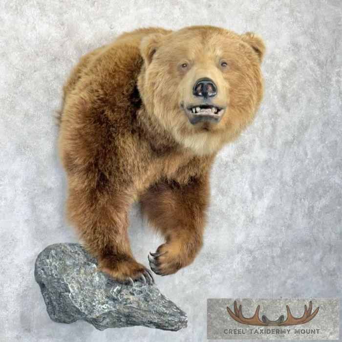 For sale, we have an exquisite Brown Bear half-life-size mount for sale, posed walking on a faux rock, looking slightly to the viewer’s left side. This Brown Bear is large for the species and features thick brown hair, a realistic facial expression, and masterful taxidermy craftsmanship. This is the perfect piece for a cabin or trophy room. All of this combines to earn this mount our coveted World Class™ overall quality rating. All applicable measurements and dimensions are provided in the specifications section to help ensure this item will fit within your intended space, as well as meet expectations regarding the item’s featured attribute sizes, scores, etc.