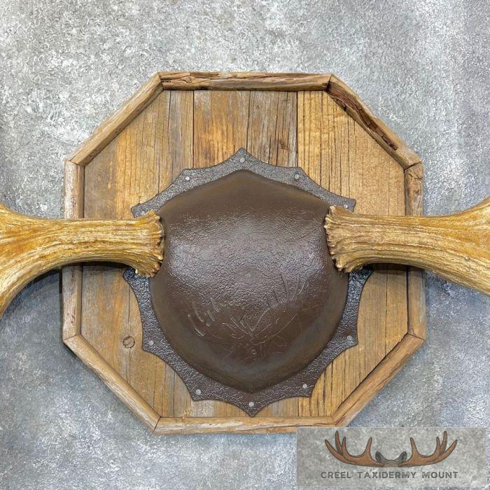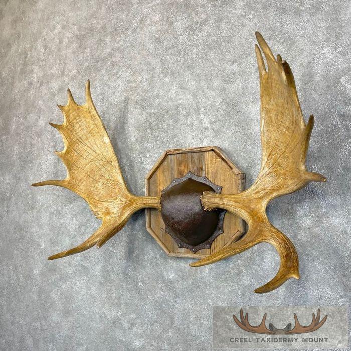 For sale, we have a magnificent Moose antler taxidermy plaque. This piece features a beautiful barn wood plaque, a black plastic skull plate cover, and a massive set of antlers with an outside spread of 46 inches! If you are looking for a rustic piece to spice up your cabin or office, you just found it! All applicable measurements and dimensions are provided to help ensure this item will fit within your intended space, as well as meet expectations regarding the item’s featured attribute sizes, scores, etc.