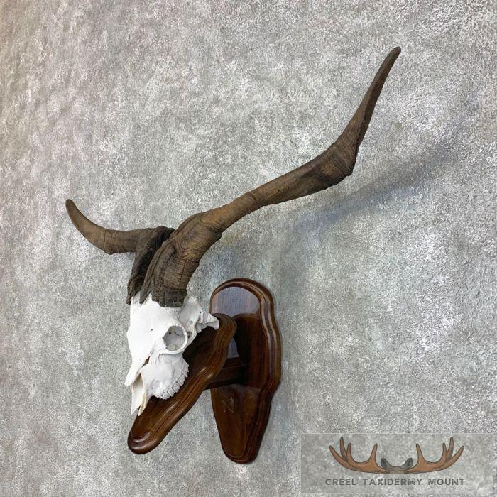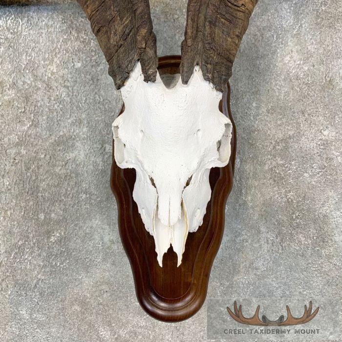 For sale, we have an excellent Catalina Goat skull “European” taxidermy mount. This piece features an artificially whitened skull, a gorgeous walnut wall hanging plaque, and a massive set of horns that each measure over 29.5 inches in length. This piece is simply just beautiful and would look great in any room! All applicable measurements and dimensions are provided in the specifications section to help ensure this item will fit within your intended space, as well as meet expectations regarding the item’s featured attribute sizes, scores, etc.