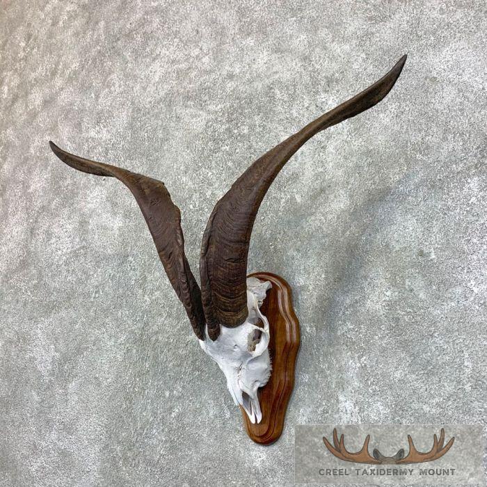 For sale, we have an outstanding Catalina Goat skull “European” taxidermy mount. This piece features an artificially whitened skull, a gorgeous wood wall hanging plaque, and a great set of horns that each measure over 25 inches in length. This piece is simply just magnificent and would look great in any room! All applicable measurements and dimensions are provided in the specifications section to help ensure this item will fit within your intended space, as well as meet expectations regarding the item’s featured attribute sizes, scores, etc.