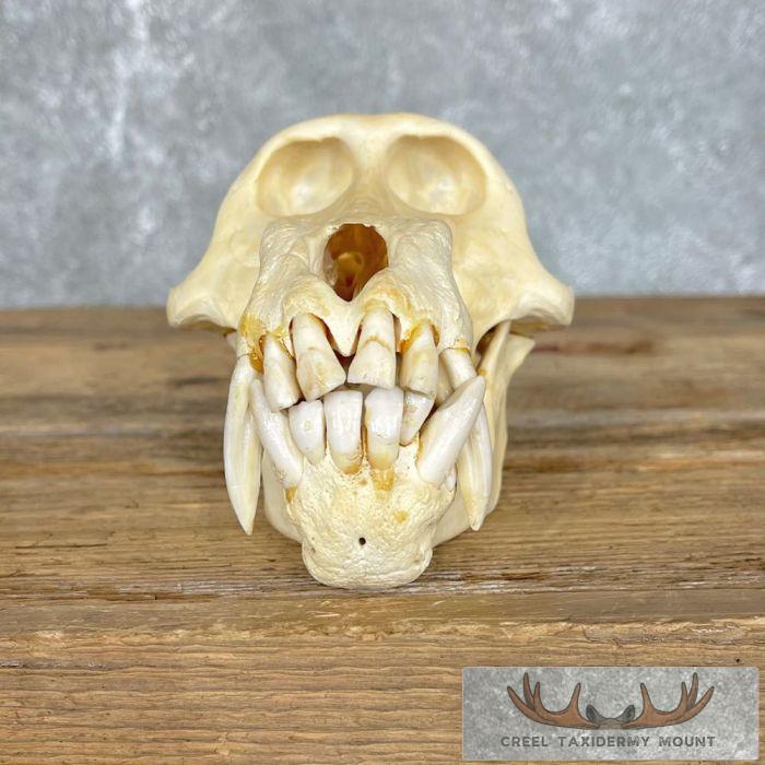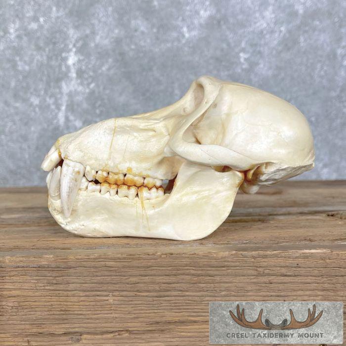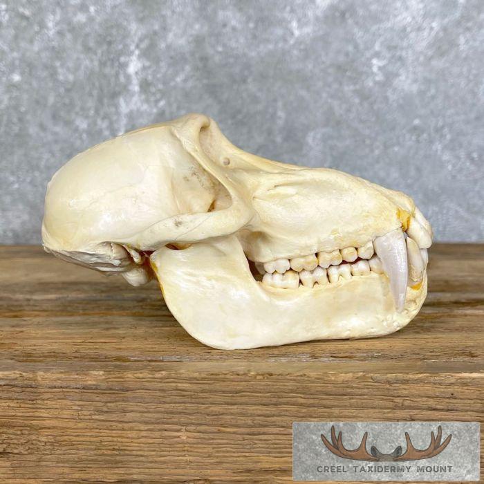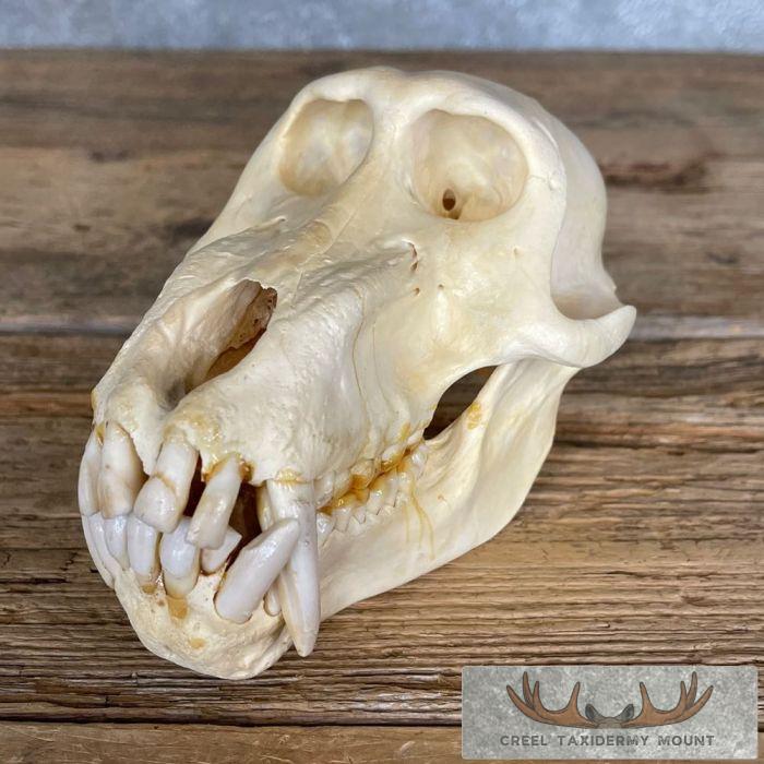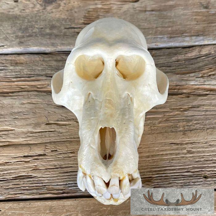 For sale, we have an outstanding Chacma Baboon full skull. This skull has been professionally cleaned and naturally weathered. The skull itself measures 4 9/16″ in width and 7 12/16″ in length. If you are looking for a great piece for a cabinet of creation or a skull collection, this is the perfect piece for you! All applicable measurements and dimensions are provided in the specifications section to help ensure this item will fit within your intended space, as well as meet expectations regarding the item’s featured attribute sizes, scores, etc.