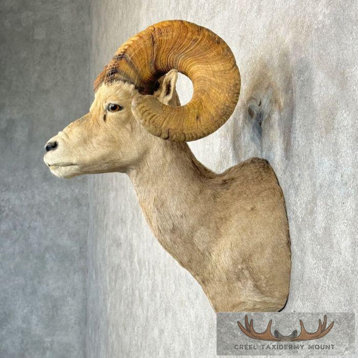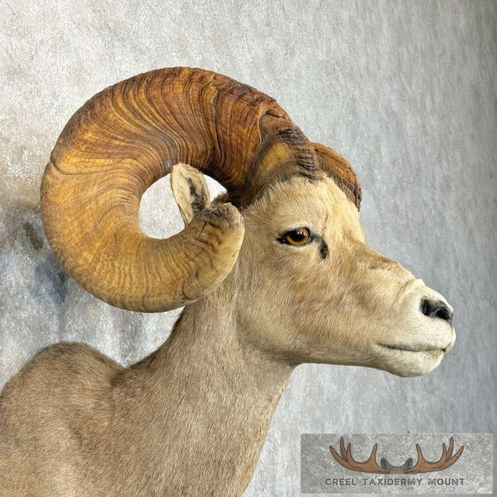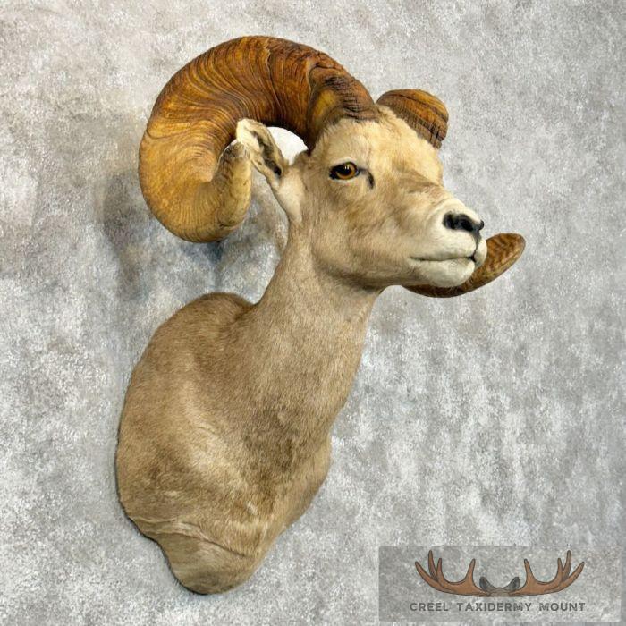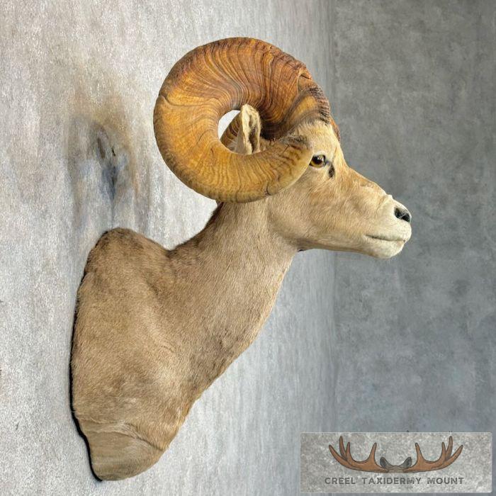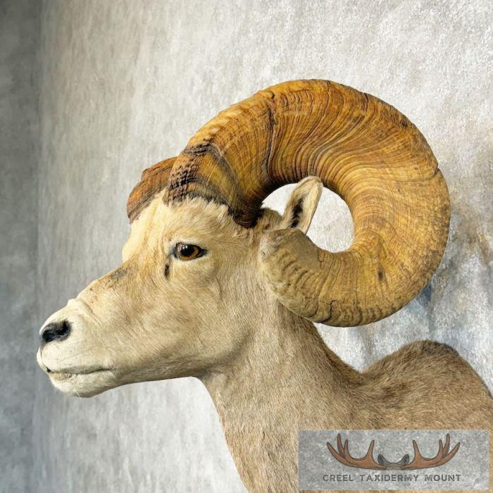 For sale, we have an exceptional Desert Bighorn Sheep taxidermy shoulder mount, posed in an upright position looking straight out into the room. This Sheep features thick hair and a fabulous set of horns that earn an SCI Silver Medal with a score of 162 3/8″. This mount is perfect to either start a collection of the sheep slam or the piece to top it off! All of this, combined with skillful taxidermy craftsmanship, makes this piece perfect for a cabin or office! All applicable measurements and dimensions are provided to help ensure this item will fit within your intended space, as well as meet expectations regarding the item’s featured attribute sizes, scores, etc.
