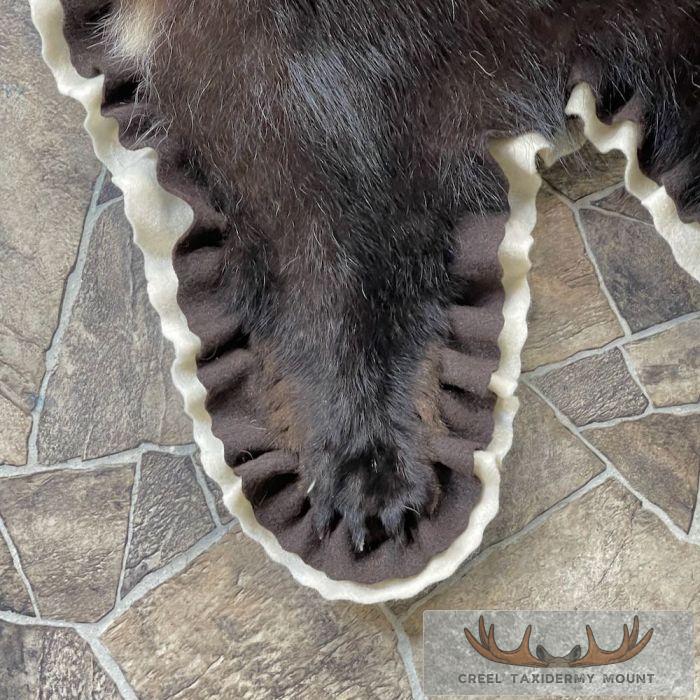 For sale, we have a massive Fisher taxidermy rug mount. This piece features ultra-soft fur, a professionally tanned hide, a black fabric backing protecting against wear, a black and cream double furled felt border and incredible taxidermy craftsmanship. This is the best fisher rug we have ever had! Fisher rugs are typically displayed on the floor, but this rug includes d-loops to hang on a wall. If it is displayed on the floor, foot traffic is not recommended, damaging the hair. All applicable measurements and dimensions are provided in the specifications section to help ensure this item will fit within your intended space, as well as meet expectations regarding the item’s featured attribute sizes, scores, etc.