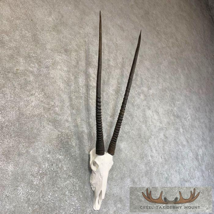 For sale, we have a magnificent Gemsbok ‘European’ taxidermy mount. This piece features a reproduction skull and an excellent set of horns that earn a Safari Club International with a score of 87 1/8″. The horns are also removable for easy shipping and hanging! This Gemsbok skull is the perfect piece to get that ‘safari’ feel. All applicable measurements and dimensions are provided in the specifications section to ensure this item will fit within your intended space and meet expectations regarding the item’s featured attribute sizes, scores, etc.