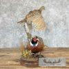 For sale, we have a great pair of Ringneck Pheasants, both posed on a custom walnut base with a driftwood branch and habitat accents. Both of these Pheasants feature good plumage and expert taxidermy craftsmanship. All applicable measurements and dimensions are provided in the specifications section to help ensure this item will fit within your intended space, as well as meet expectations regarding the item’s featured attribute sizes, scores, etc.