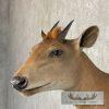 For sale, we have a magnificent Yellow-backed Duiker shoulder taxidermy mount, posed in a semi-upright position looking to the viewers right out into the room. The Yellow-backed Duiker itself features a great hide, outstanding hair, phenomenal taxidermy craftsmanship, and an impressive set of horns that earn a Safari Club International Silver Medal with a score of 16 0/16″. We’ve never had a yellow-backed duiker, so this is a real treat! We don’t expect this piece to last long! All applicable measurements and dimensions are provided in the specifications section to help ensure this item will fit within your intended space, as well as meet expectations regarding the item’s featured attribute sizes, scores, etc.